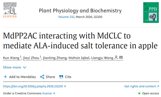 MdPP2AC与MdCLC互作介导ALA诱导的苹果耐盐性